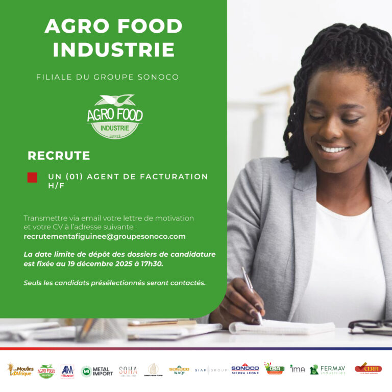 poste en objet) – à l’adresse: recrutementafiguinee@groupesonoco.com