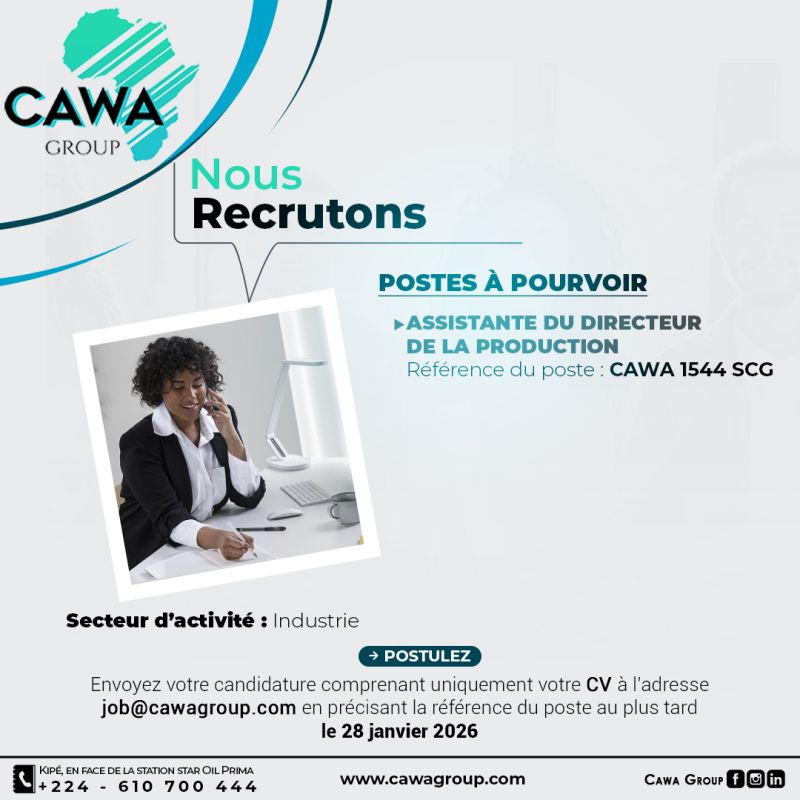 CAWA Guinée recrute pour le compte d’une entreprise spécialisée dans le secteur industriel basée en République de Guinée.