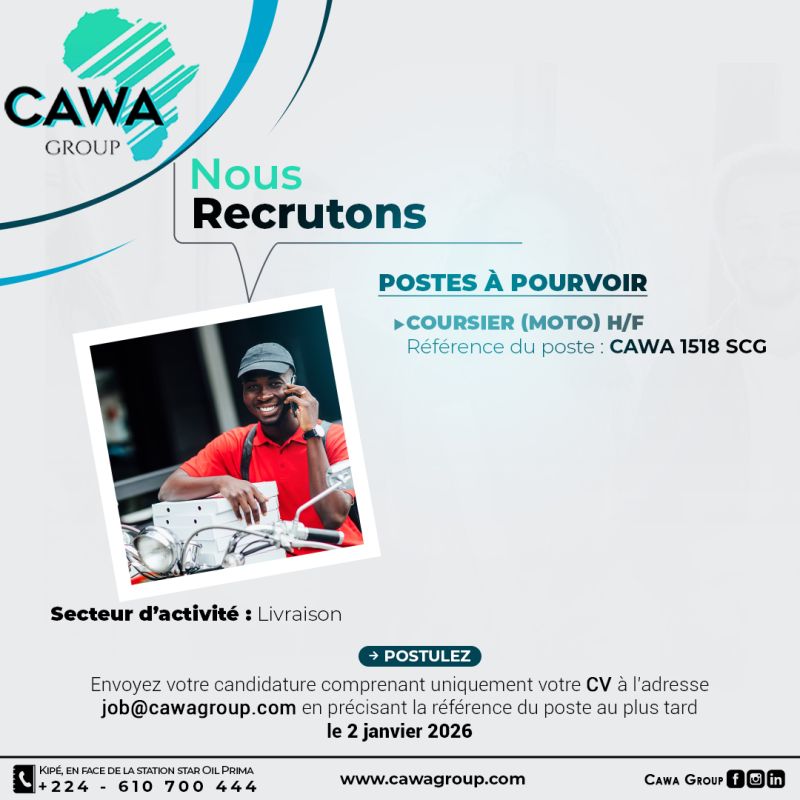 CAWA Guinée recrute pour le compte d’une entreprise spécialisée dans la livraison basée en République de Guinée.
