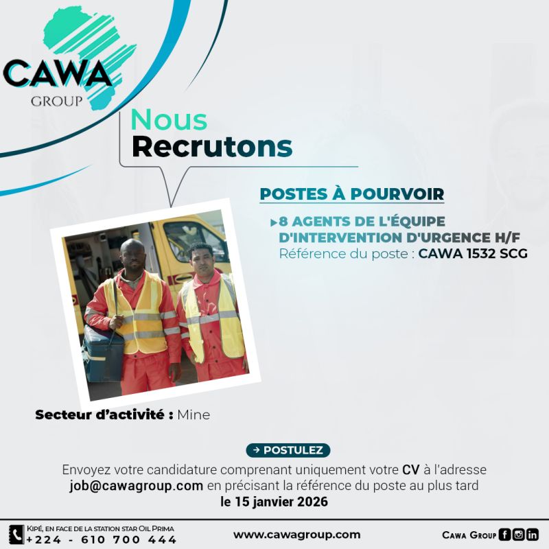 CAWA Guinée recrute pour le compte d’une entreprise spécialisée dans le secteur minier basée en République de Guinée.