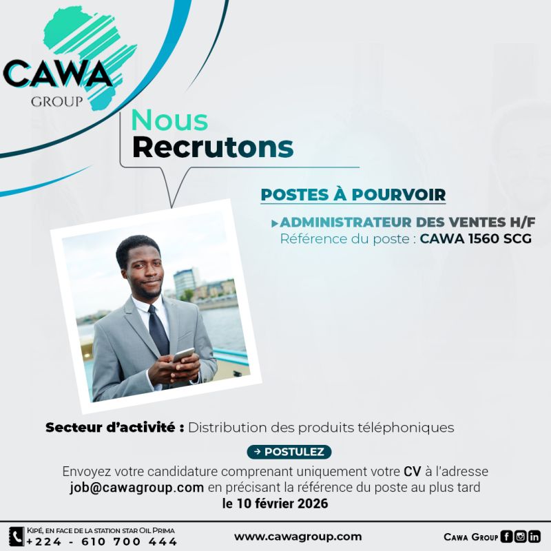 CAWA Guinée recrute pour le compte d’une entreprise spécialisée dans la distribution des produits téléphoniques basée en République de Guinée.