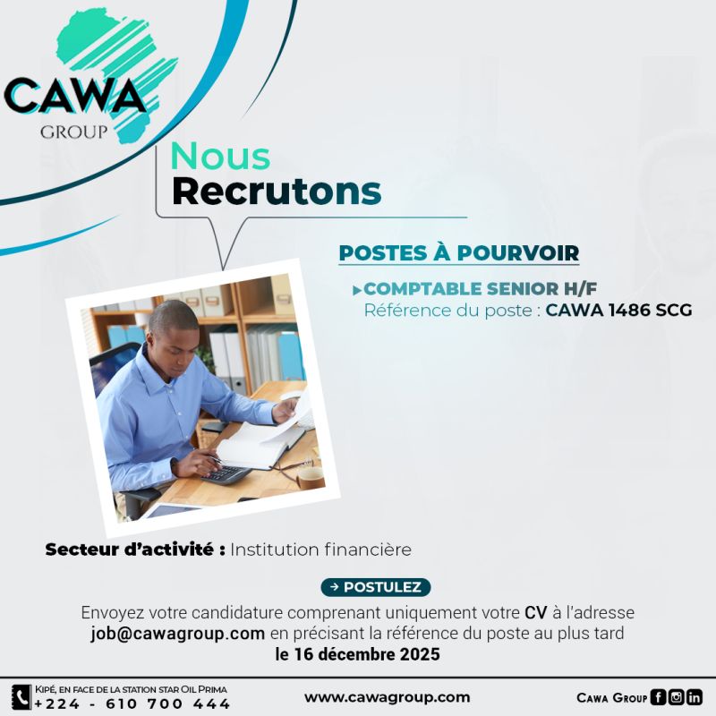 Envoyez votre candidature comprenant uniquement votre CV en version Word ou PDF par e-mail à l’adresse job@cawagroup.com en précisant la référence du poste. Date limite de dépôt : 16 Décembre 2025. Les candidatures féminines sont vivement souhaitées.