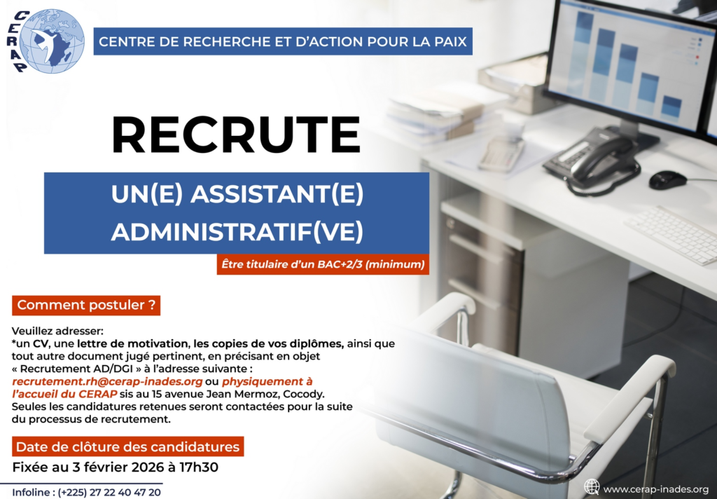 Dans le cadre du renforcement de ses équipes, le CERAP lance un appel à candidatures pour le recrutement