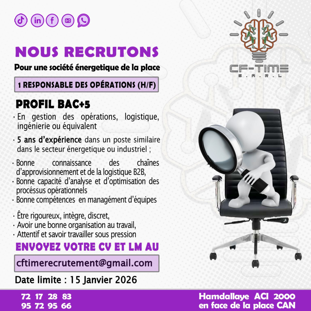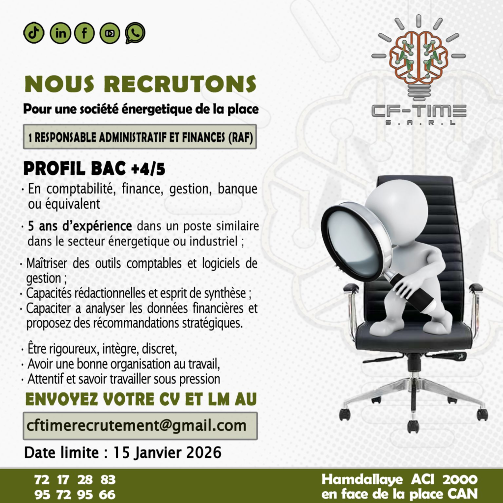 Pour candidater, envoyez votre CV + la LM au cftimerecrutement@gmail.com au plus tard, le 15 Janvier 2026 à 17H00.