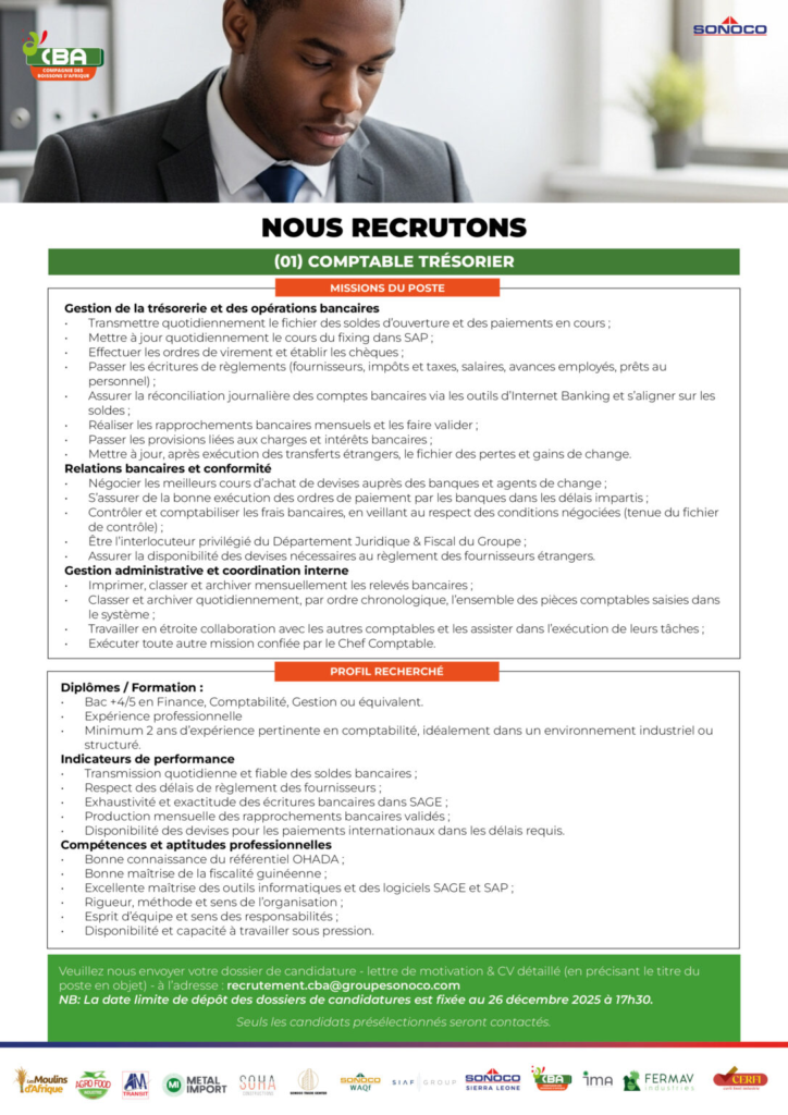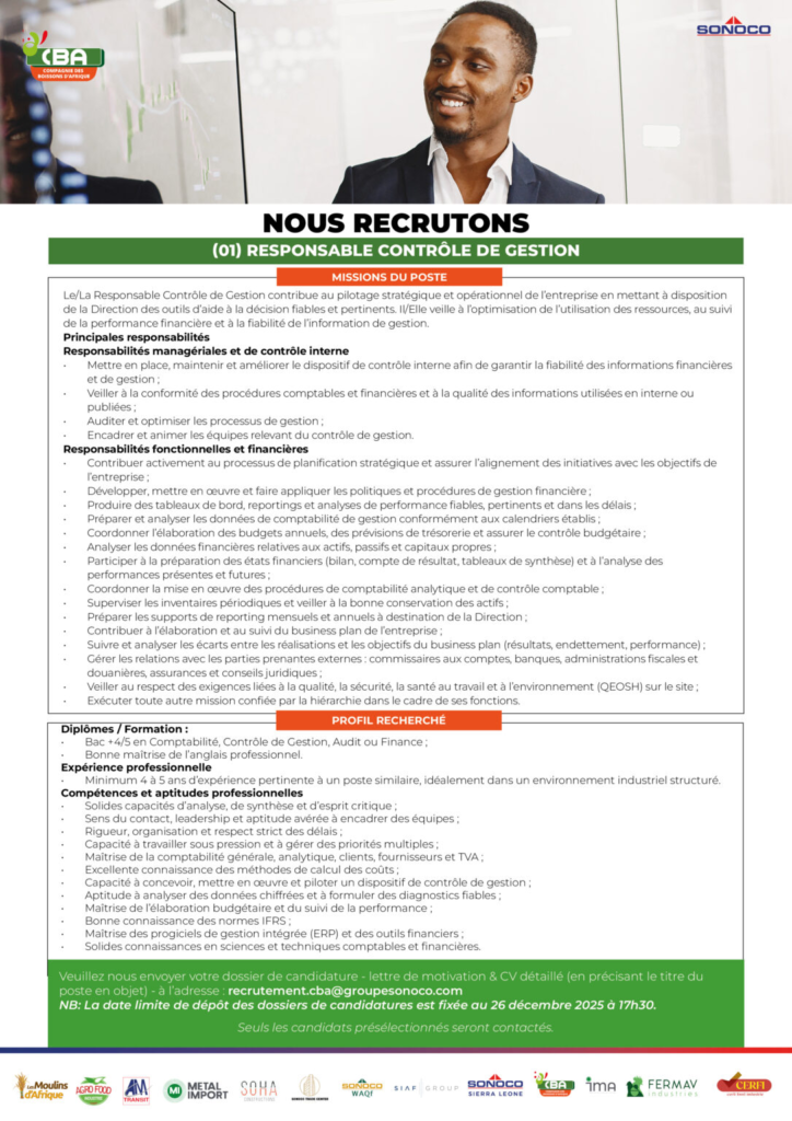 Veuillez nous envoyer votre dossier de candidature – lettre de motivation & CV détaillé (en précisant le titre du poste en objet) – à l’adresse: recrutement.cba@groupesonoco.com