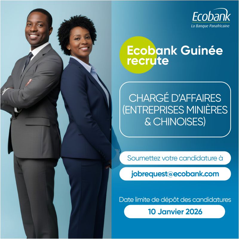 Ecobank Guinée recrute un Chargé d’Affaires – Entreprises Minières et Chinoises !