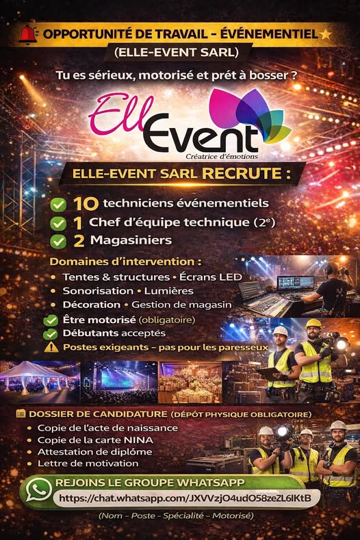 ELLE-EVENT SARL recrute :