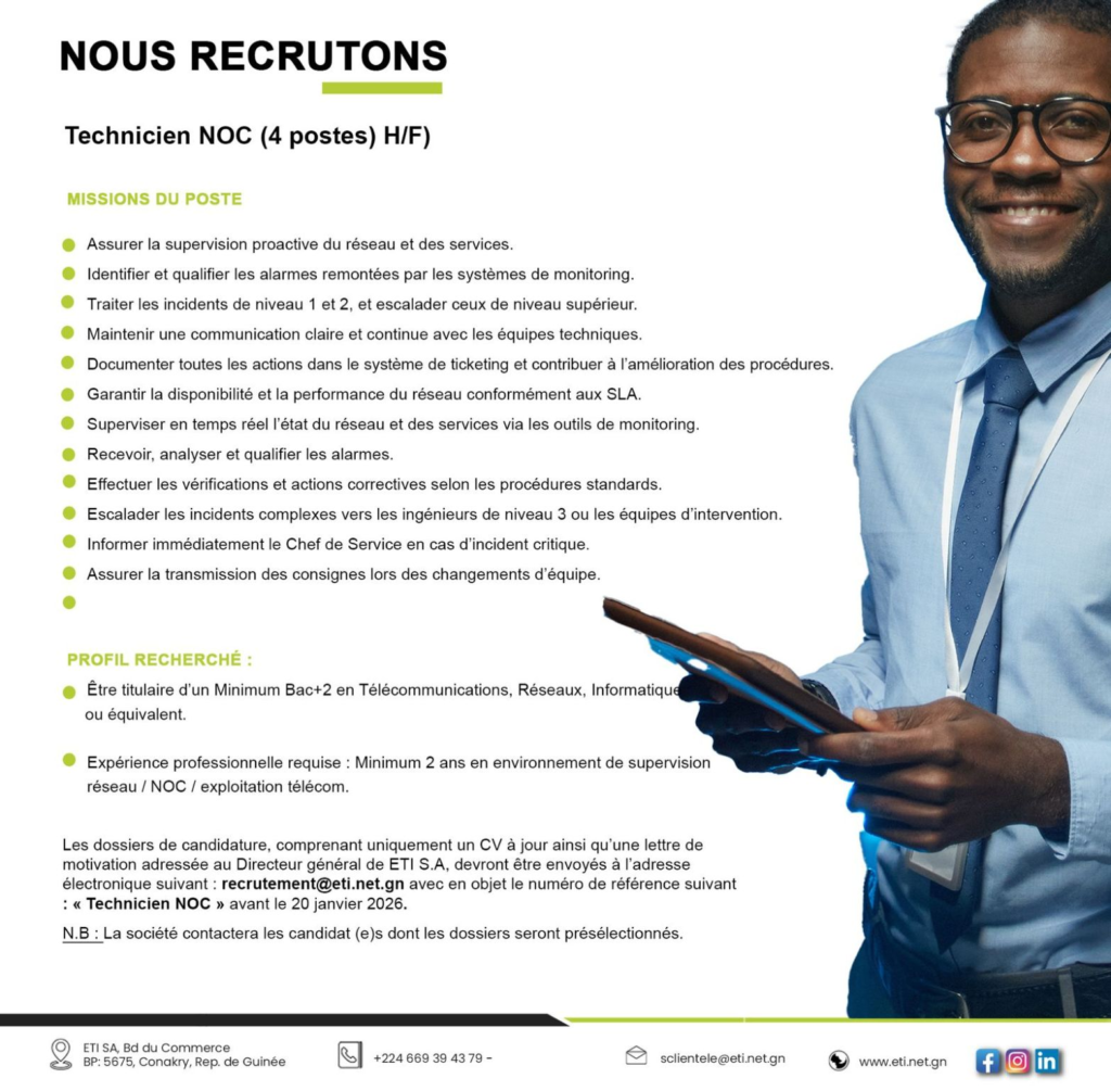 : << Technicien NOC >> avant le 20 janvier 2026.