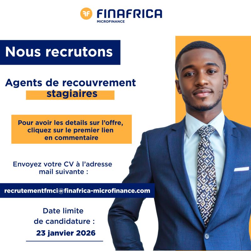 FINAFRICA RECRUTE DES AGENTS DE RECOUVREMENT STAGIAIRES H/F