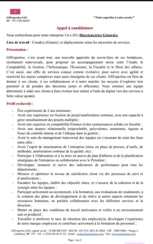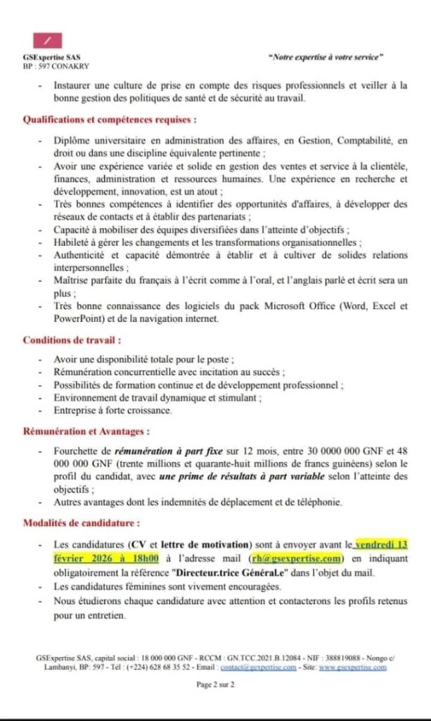 Lambanyi, BP: 597-Tél: (+224) 628 68 35 52-Email: contact@gsexpertise.com Site: www.gsexpertise.com