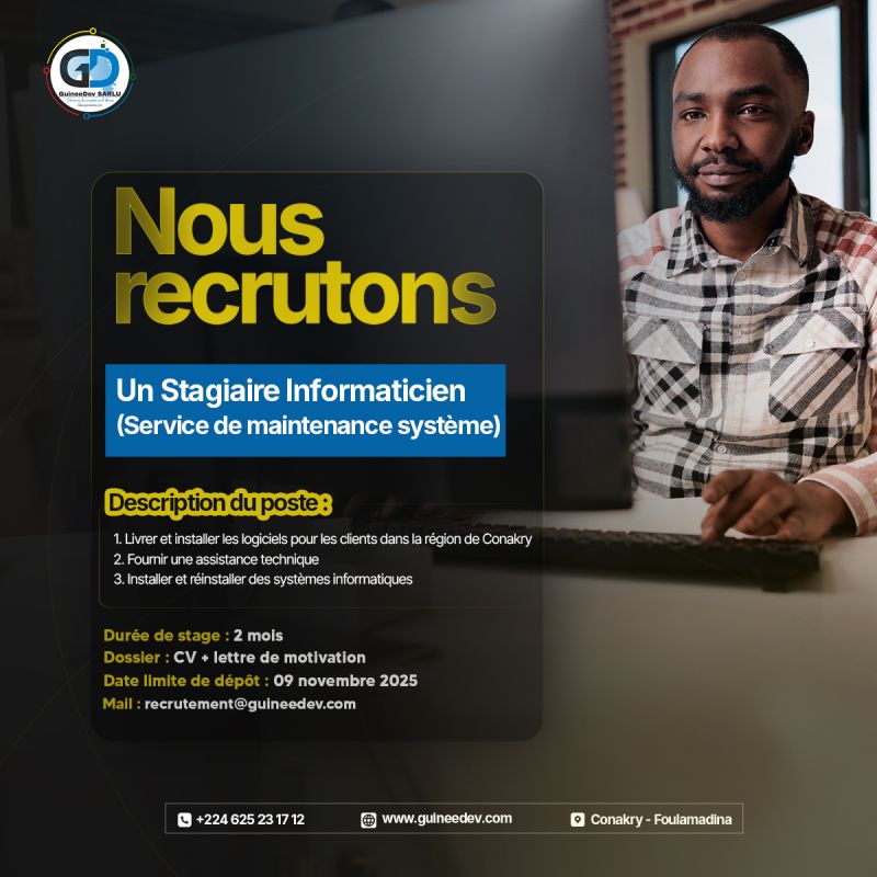 📧 Envoyez votre candidature à : recrutement@guineedev.com