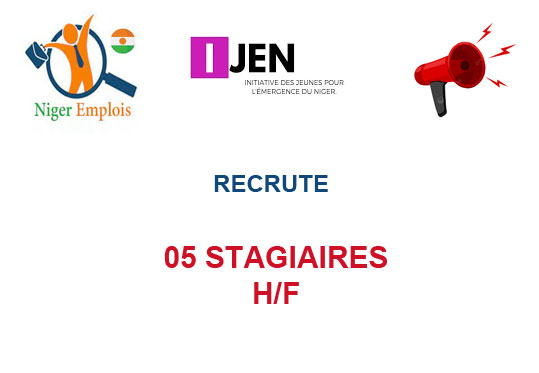 Dans le cadre de la mise en œuvre de ses projets en cours, l’Initiative des Jeunes pour l’Émergence du Niger (IJEN) recrute cinq (05) stagiaires pour un programme de stage d’une durée de trois (03) mois.