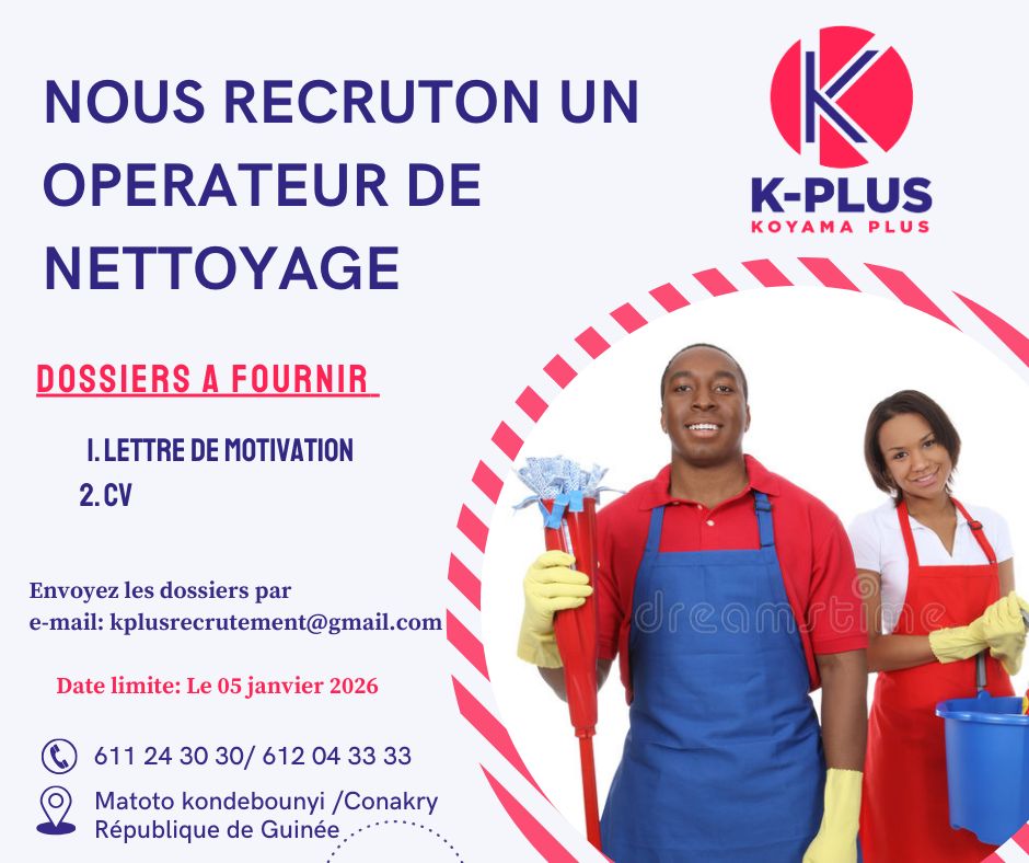 Dans le cadre du renforcement de son service de nettoyage professionnel, ๐๐๐๐๐๐ ๐๐๐๐ SARLU recrute un(e) Responsable des Opรฉrations de Nettoyage.