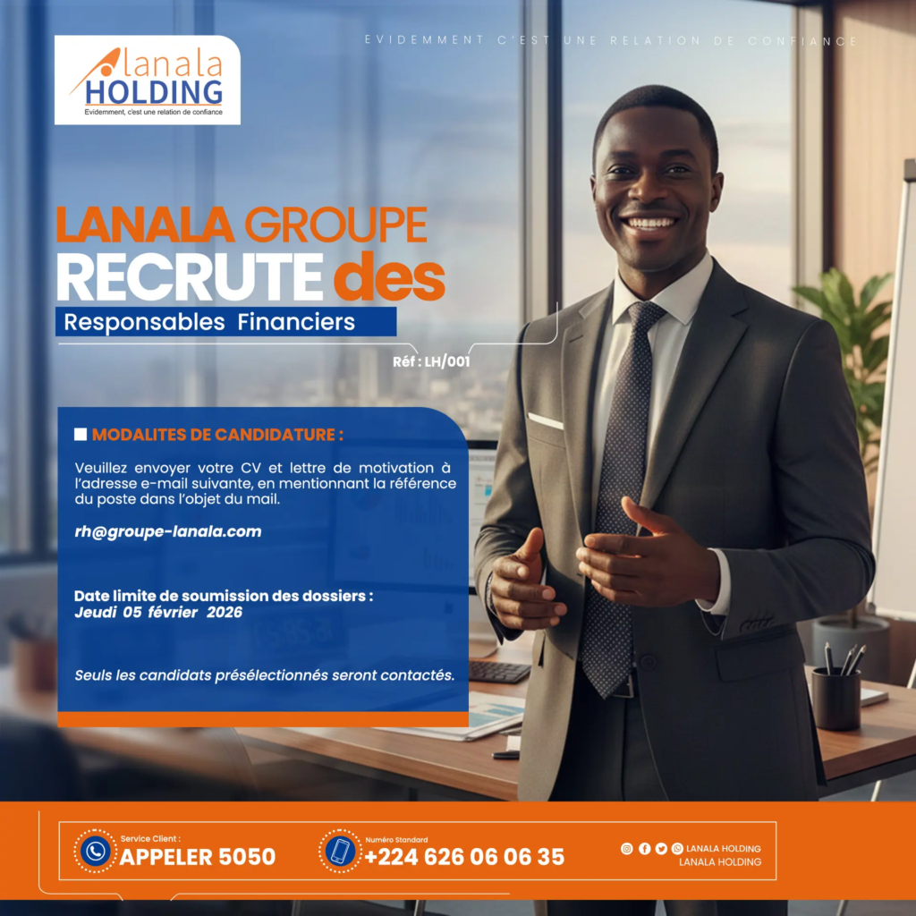 Dans le cadre du renforcement de ses équipes dirigeantes, le Groupe LANALA évoluant dans les secteurs des assurances, de la microfinance et des services financiers digitaux recrute des Responsables Financiers pour ses différentes entités.
