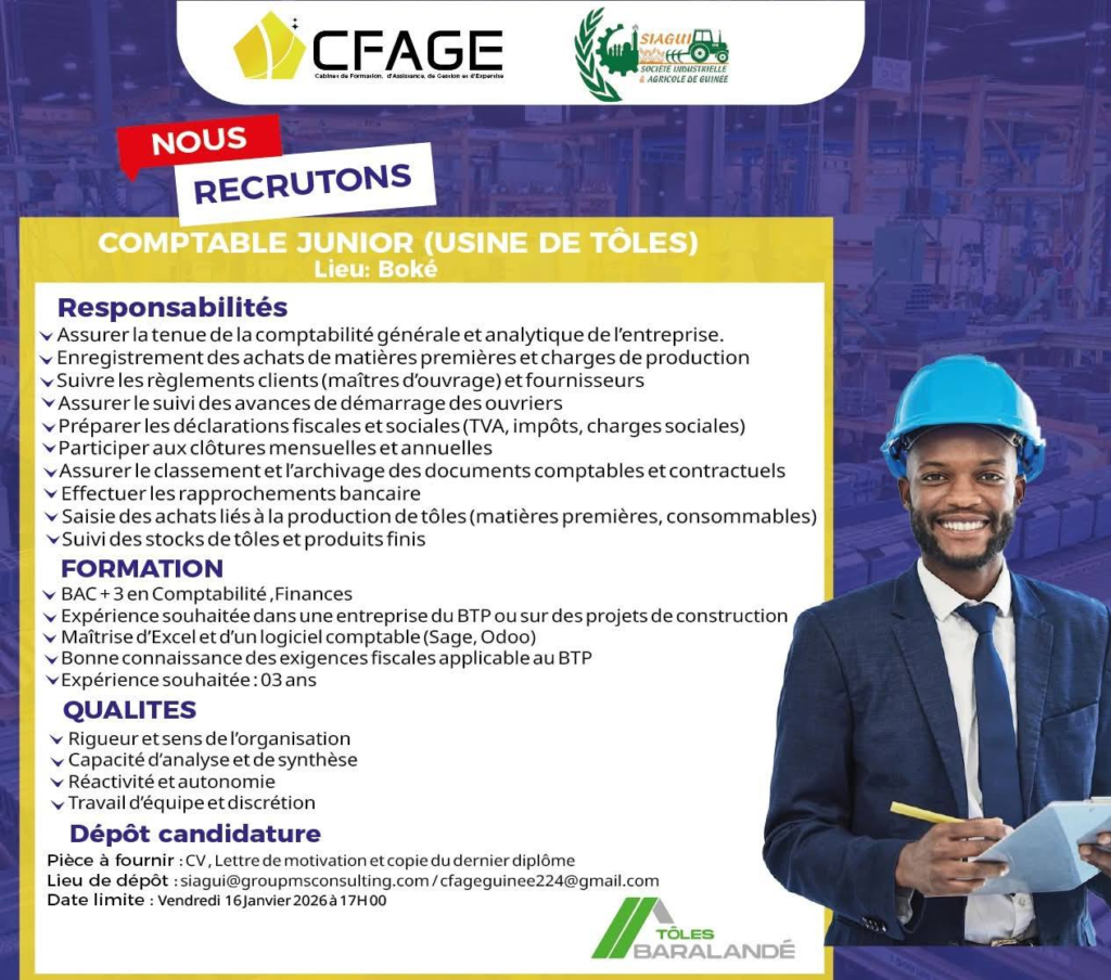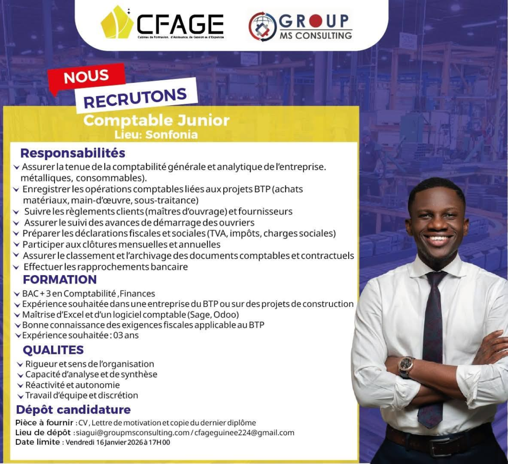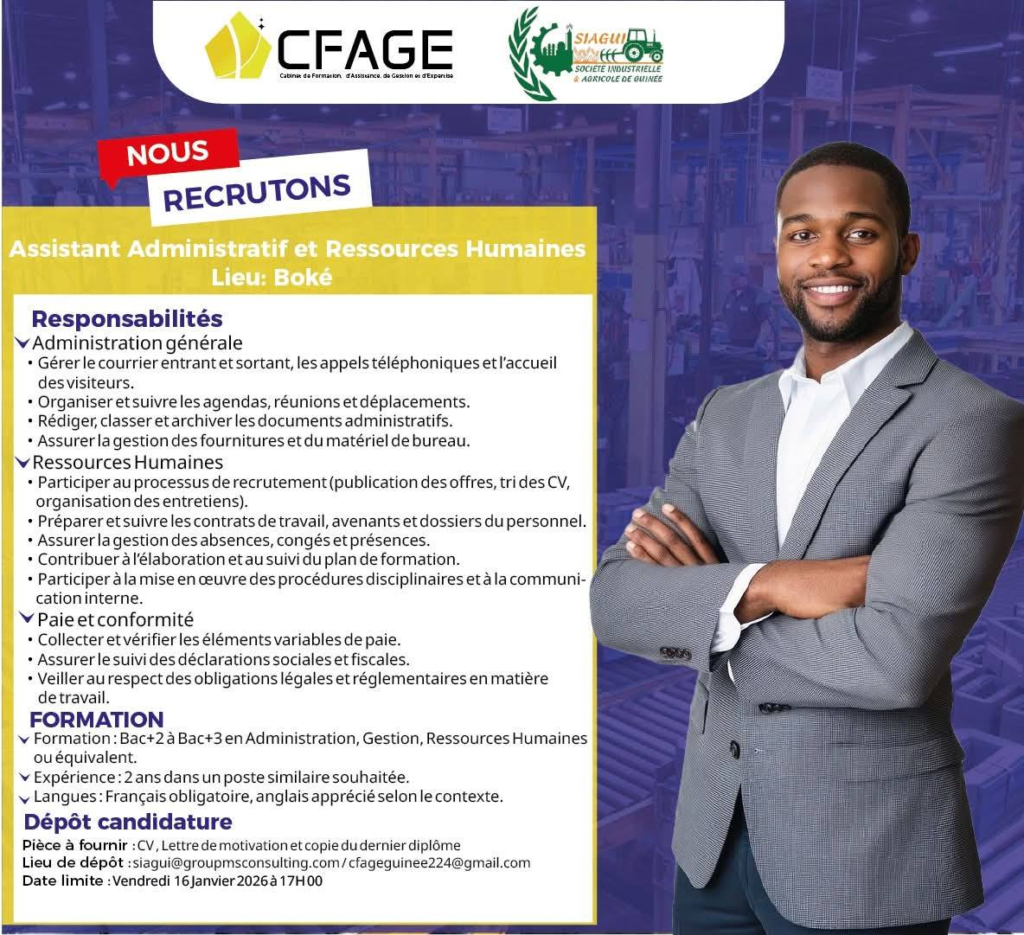 RECRUTEMENT AU PROFIT DE SIAGUI (BOKE) ET MS CONSULTING (CONAKRY)
