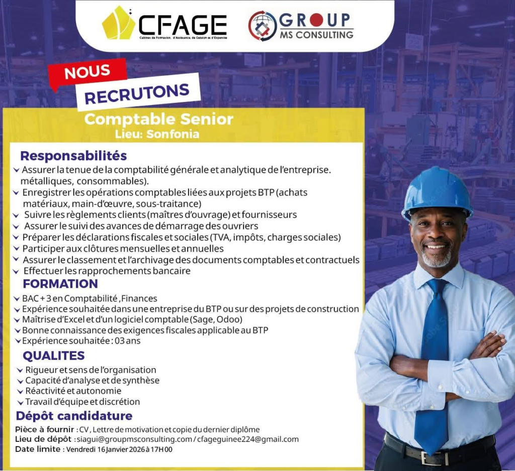 Lieu de dépôt : siagui@groupmsconsulting.com / cfageguinee224@gmail.com