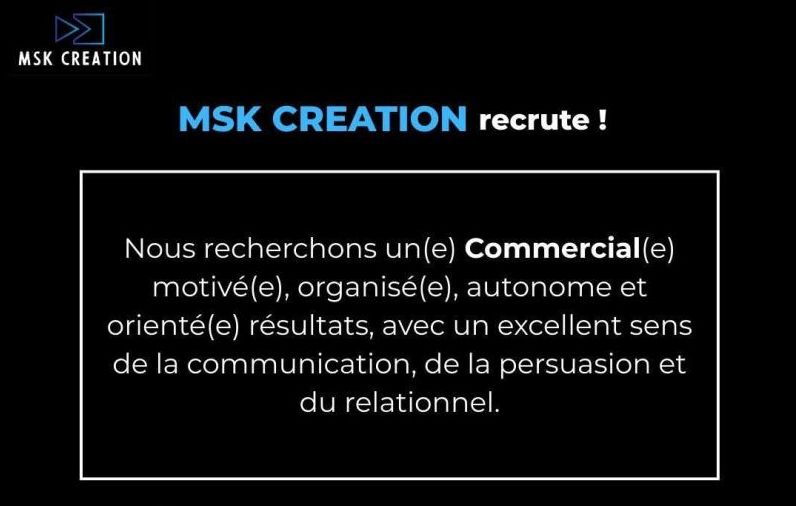 MSK CREATION RECRUTE COMMERCIAL H/F