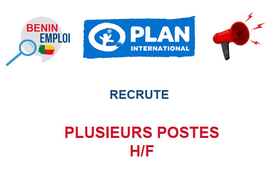 Plan International Benin recrute dans le cadre de la mise en œuvre de ses activités, les postes suivants :