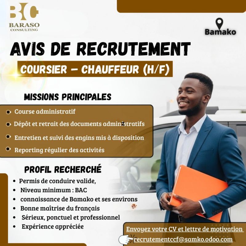 Dans le cadre du renforcement de ses activitรฉs opรฉrationnelles et administratives, Baraso recrute un Coursier-Chauffeur afin dโappuyer efficacement ses รฉquipes dans lโexรฉcution des missions quotidiennes.