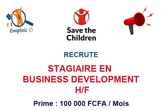 SAVE THE CHILDREN RECRUTE STAGIAIRE EN BUSINESS DEVELOPMENT H/F (Prime : 100.000 FCFA/mois)