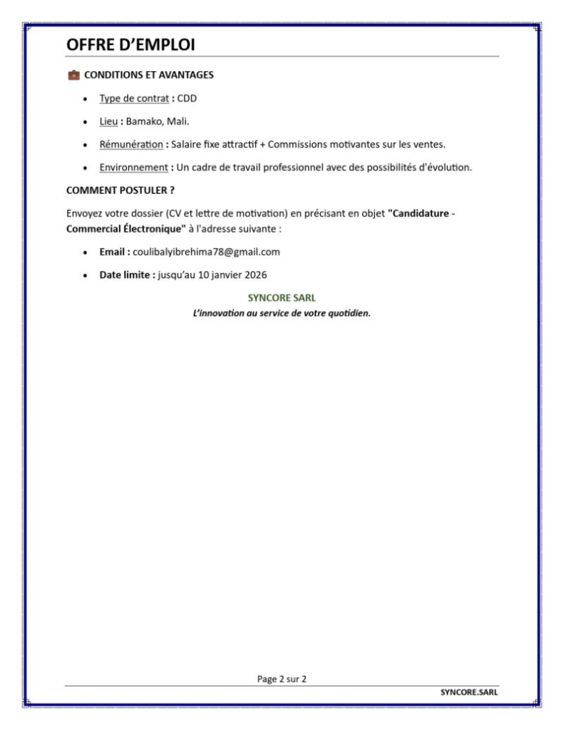 SYNCORE SARL, entreprise leader dans la fourniture de solutions technologiques, recherche des