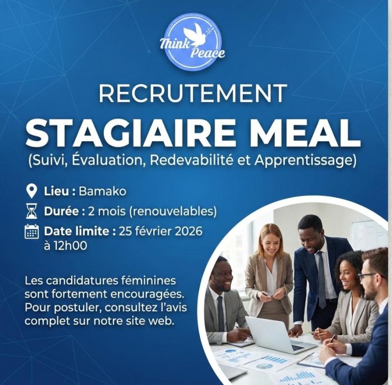 Think Peace recrute un(e) Stagiaire MEAL pour appuyer la mise en œuvre et le suivi de ses projets.