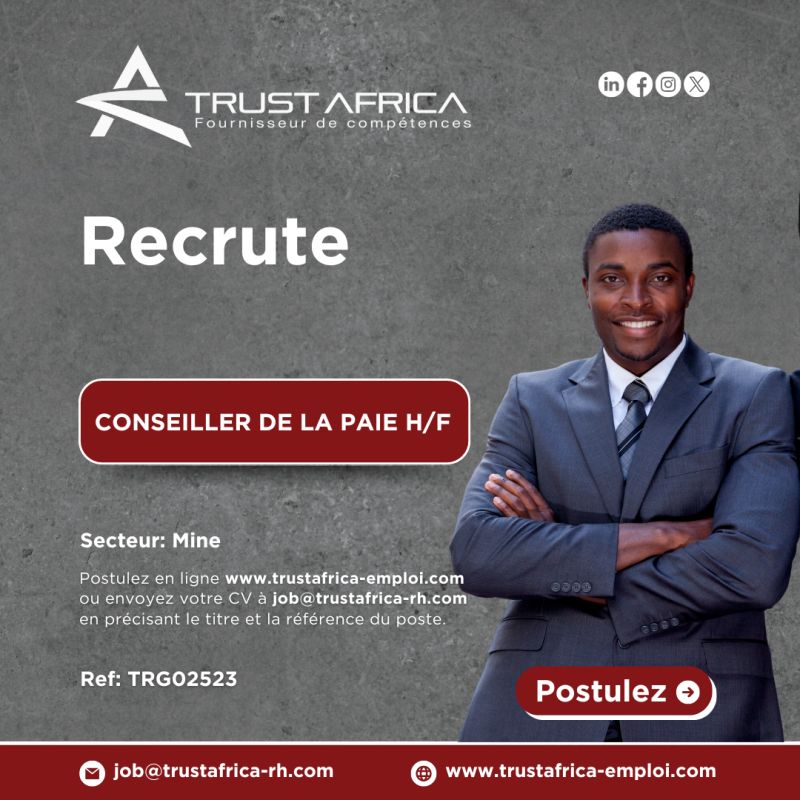 Trust Africa recrute deux Conseillers(ère) de la Paie pour un projet d’ingénierie et de construction minière en Guinée