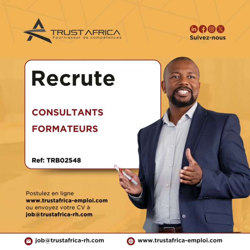 📧 Postulez dès maintenant en cliquant sur le lien ou en envoyant votre CV à job@trustafrica-rh.com en indiquant clairement le titre et la référence du poste en objet.