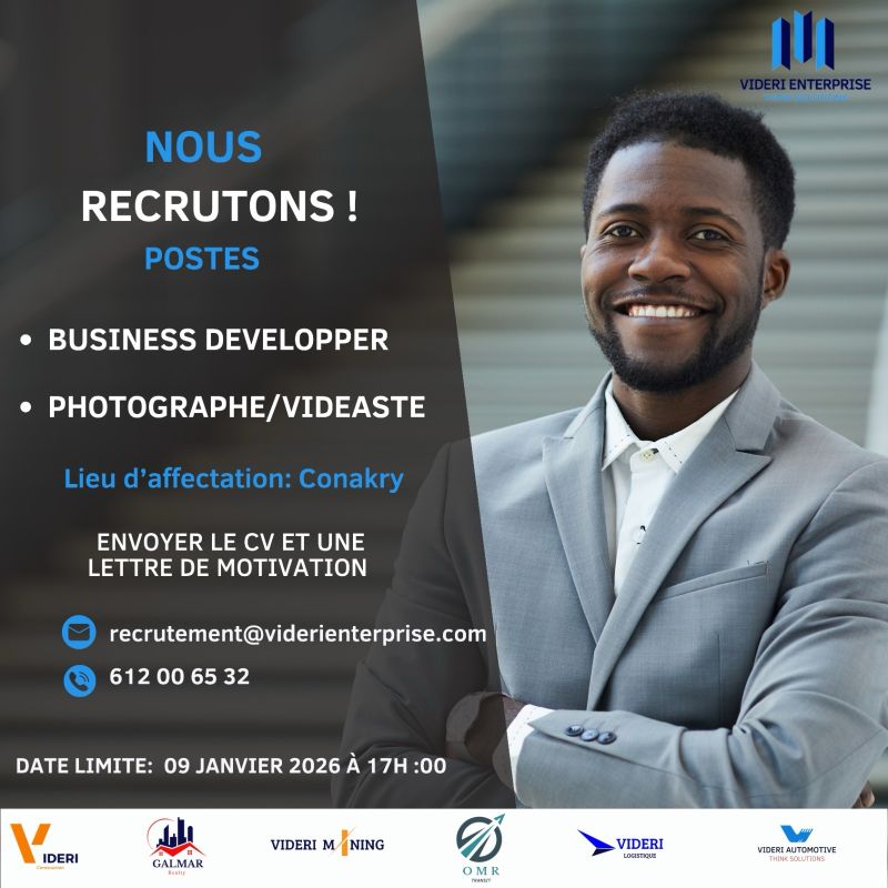 au plus tard le 09 Janvier 2026 à 17h :00mn à l’adresse électronique ci-après : recrutement@viderienterprise.com